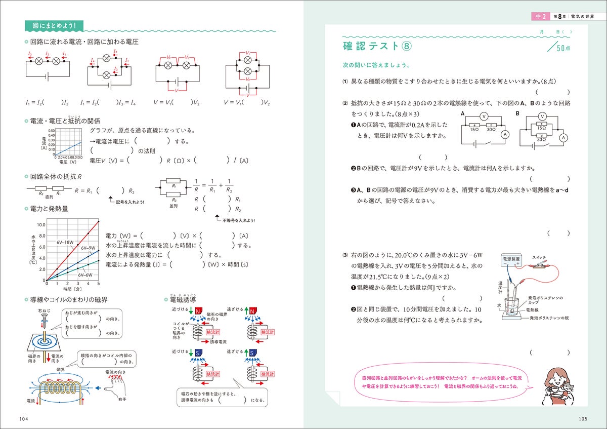 本書には、各単元の最後にまとめページと確認テストがついています。そのPDFデータをダウンロードしてプリントアウトすることで、何度でも問題演習に取り組めます。