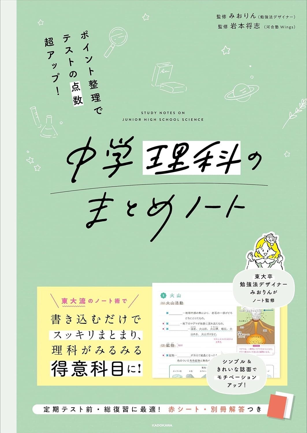 株式会社KADOKAWA(本社:東京都千代田区、取締役 代表執行役社長 CEO:夏野剛、以下KADOKAWA)は、2026年2月19日(木)に『ポイント整理でテストの点数超アップ! 中学理科のまとめノート』(監修:みおりん、岩本将志)を発売いたしました。