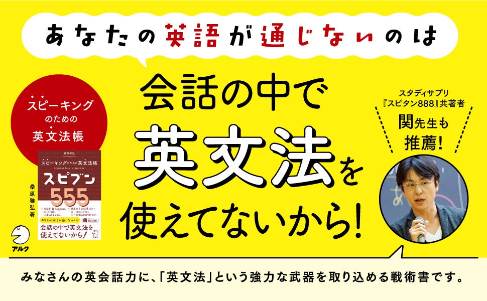 株式会社アルク(東京都品川区 代表取締役社長:田中 伸明、以下アルク)より、新刊『スピブン555』のご案内を申し上げます。