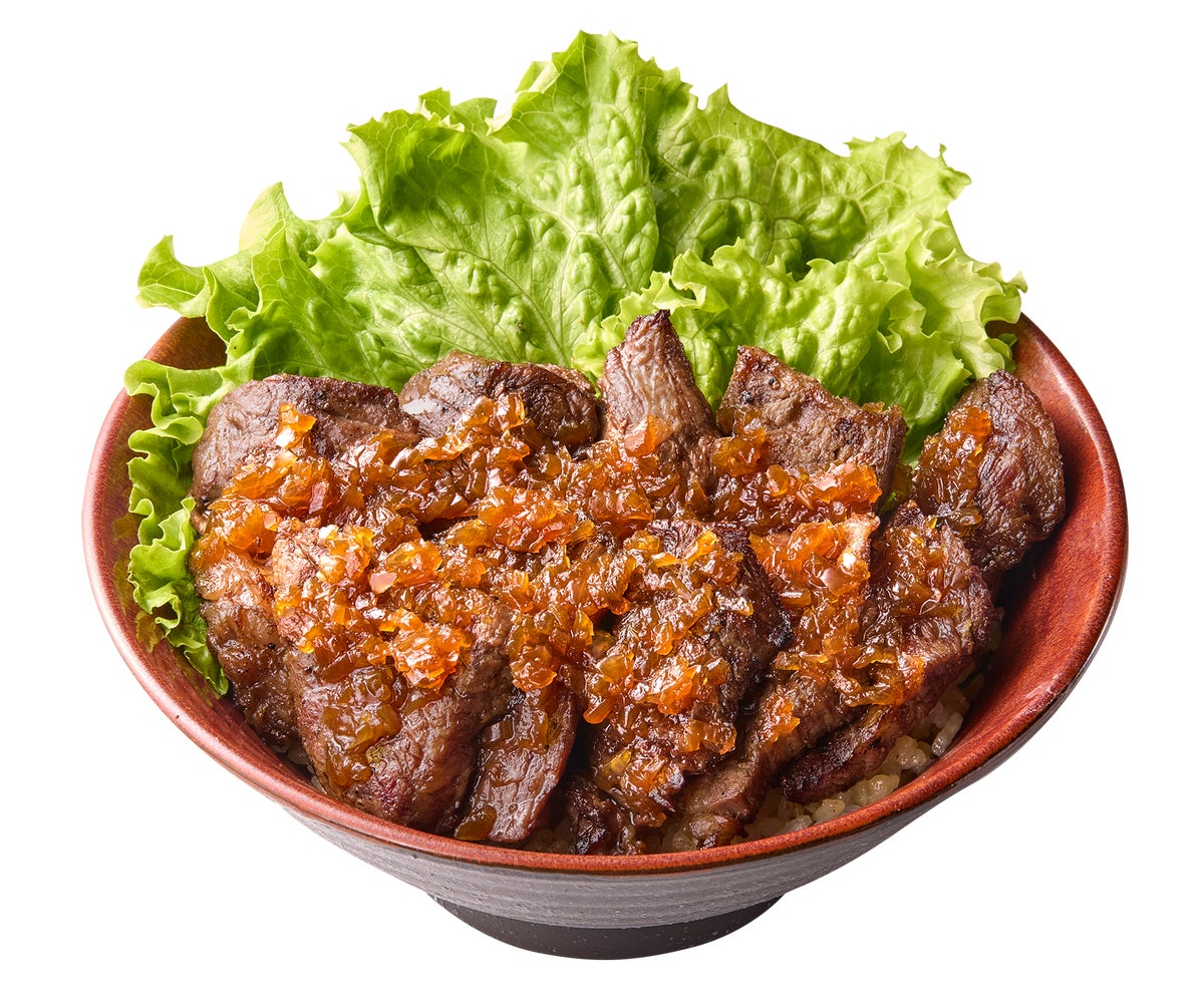 『国産牛ステーキ 自家製オニオンソース』(1人前)1,290円/(1.5人前)1,590円炭火で焼き上げる国産牛ロースに、肉の旨みを引き立てる自家製オニオンソースを合わせた丼です。