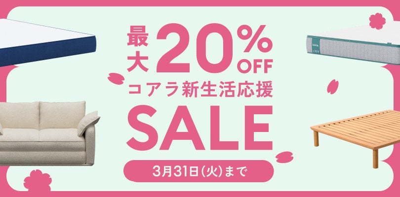 コアラジェイピー株式会社(本社:東京都渋谷区、代表:ルスラン・プソノク)は、2026年2月23日(月・祝)から3月31日(火)の間、マットレスやソファーベッドなど人気商品が最大20%OFFになる「コアラ新生活応援セール」を公式ウェブサイトとコアラ青山ストア(東京都港区)にて開催いたします 。ワンルームで新生活をスタートする方には、「コアラソファーベッド CUSHY」がおすすめ!コアラ青山ストアでは、「Koala 1 Room Switch」イベントで、CUSHYを1時間じっくり試せる体験イベントも開催中。詳しくは下記ホームページにて。