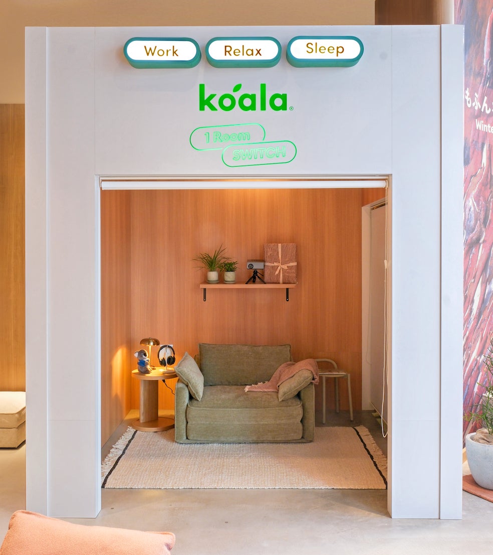 コアラ青山ストア内の体験ブースでは、「コアラソファーベッド CUSHY」を満喫できるイベントを開催中。「Work」「Relax」「Sleep」を切り替えて、1時間たっぷり自分だけの時間をお楽しみいただけます。(予約制)