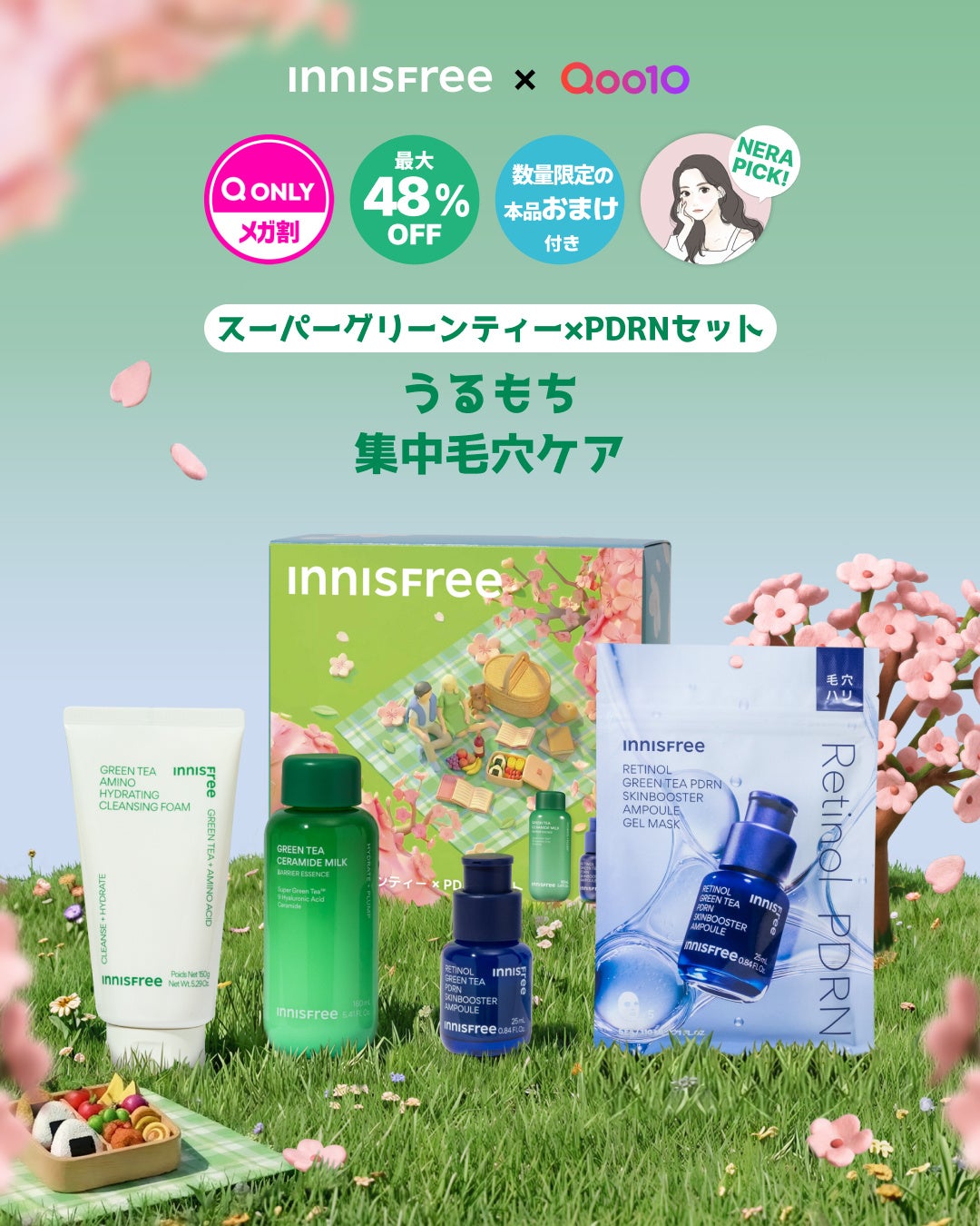 【INNISFREE X Qoo10メガ割】 桜咲く、春のはじまり肌がときめくスキンケアコレクション 4種の限定セット 2月27日 (金) 17時より発売
