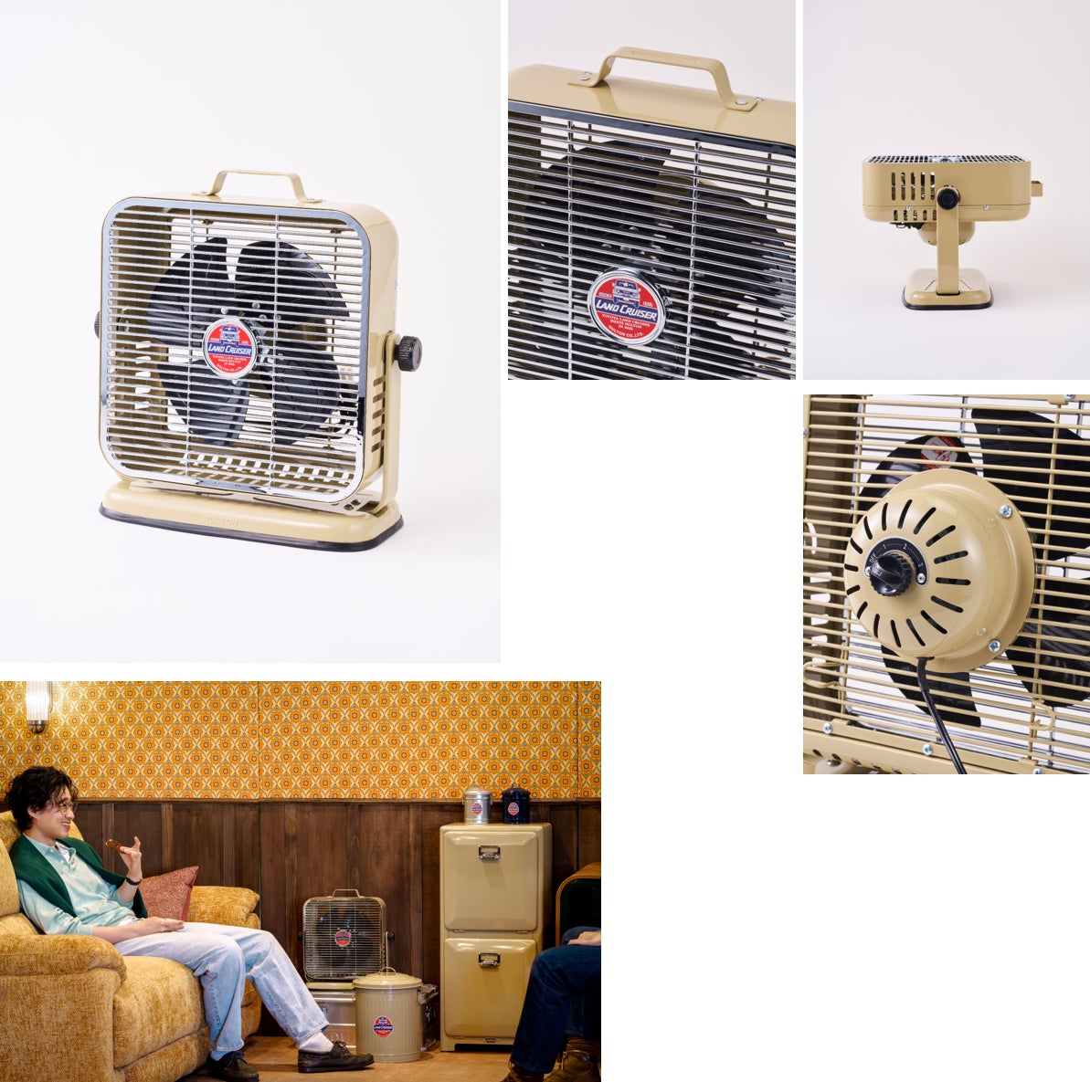 インダストリアルデザインがインテリアにムードを与えてくれるサーキュレーターを、ランドクルーザーを象徴するカラーであるベージュで製作。無骨で機能的、そのソリッドなデザインがランドクルーザーとの親和性を強く感じさせてくれる逸品。