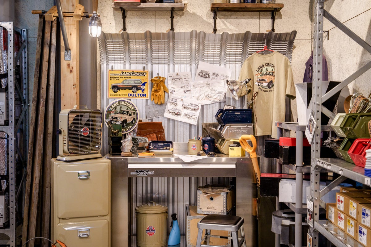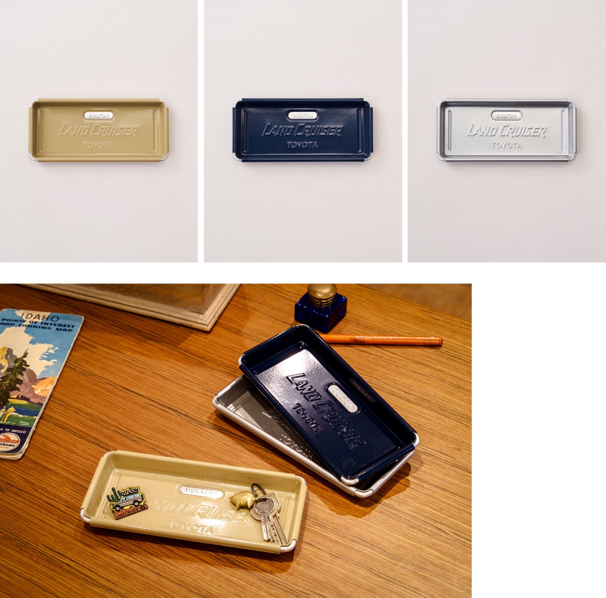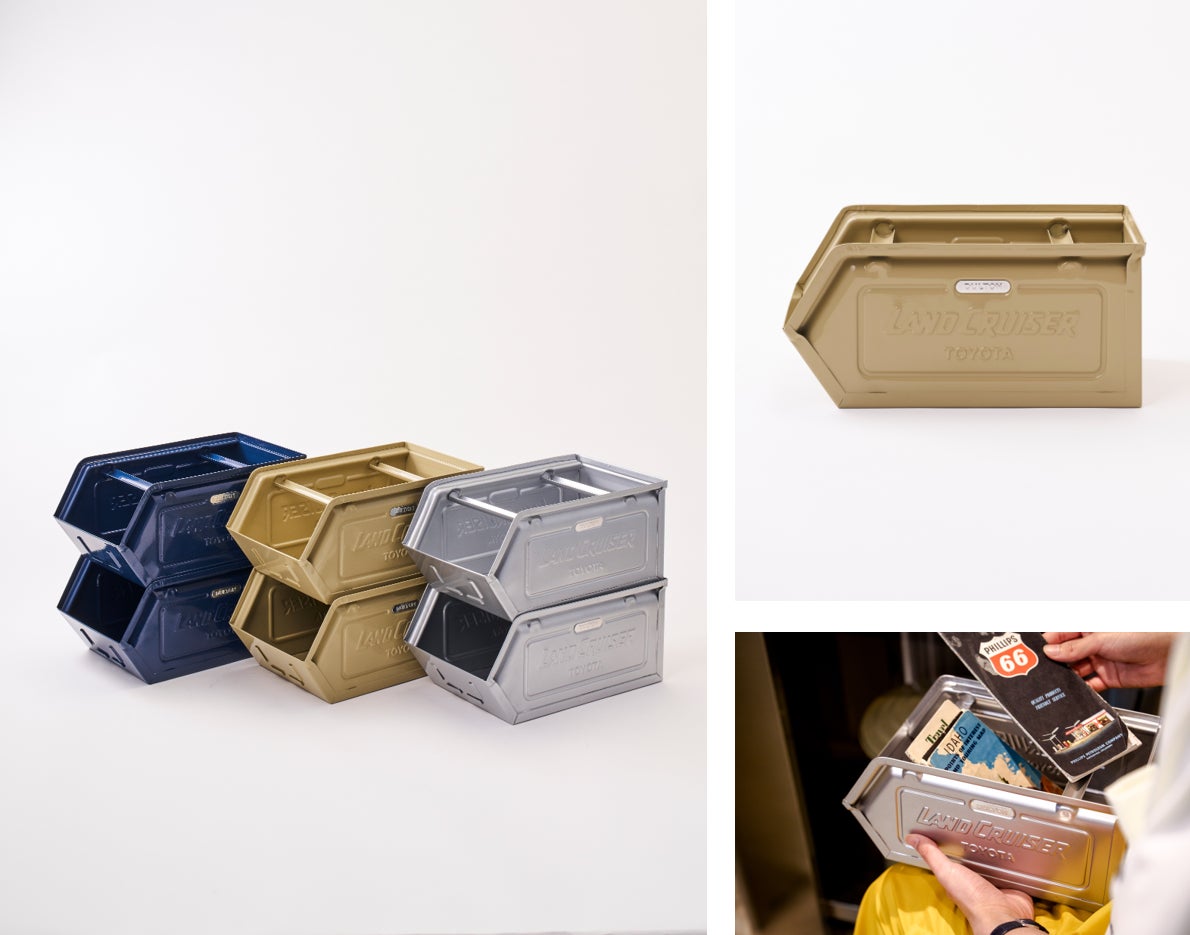 ラインアップは、GARBAGE CANやPARTS STOCKERなどダルトンの中でも特に人気の高い商品たちに、ダルトンが創業した1980年代に生まれたランドクルーザー60/70 VAN/70 WAGONのモチーフを落とし込んだデザインを展開。キーカラーに、ランドクルーザー70シリーズを象徴するベージュや、同じく過去同シリーズの車体に用いられてきたネイビーとシルバーの塗装を忠実に再現した3色を採用、無骨なガレージ感と親しみやすいポップさを併せ持つ計12型をラインアップします。
