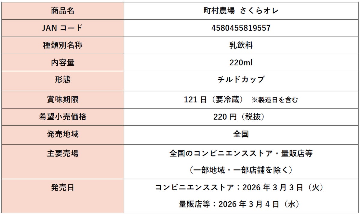 トーヨービバレッジ株式会社(本社:東京都渋谷区、代表取締役社長:熊谷聡)は町村農場の練乳を使用した「さくらオレ」を2026年3月3日(火)より全国のコンビニエンスストア、3月4日(水)より量販店等にて順次発売いたします(一部地域・一部店舗を除く)。