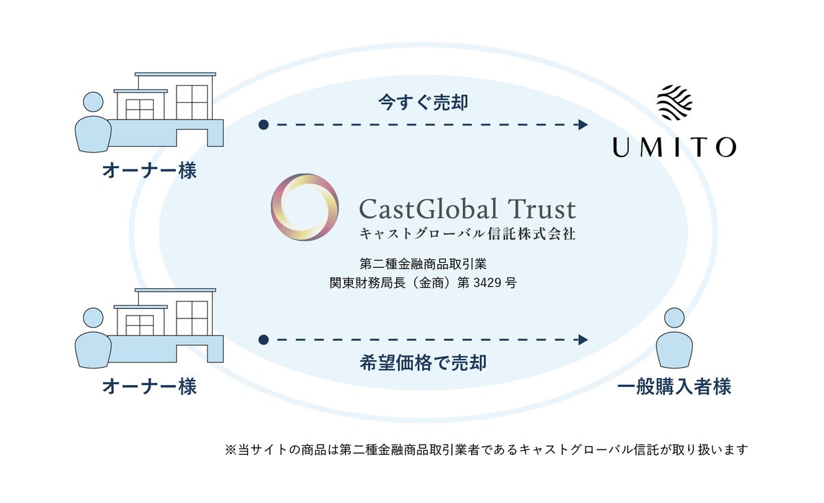 ※本仕組みの対象となるUMITO物件の詳細は、キャストグローバル信託社およびUMITOセカンダリーサイトにてご確認いただけます。