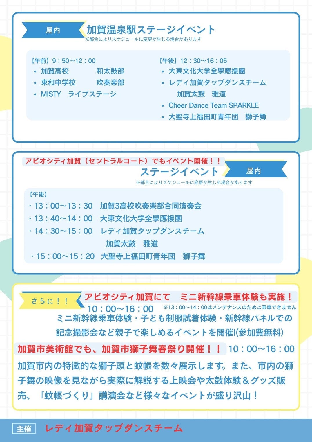 主催:加賀市獅子舞を応援する会 連絡先:090-1636-5563(山口)