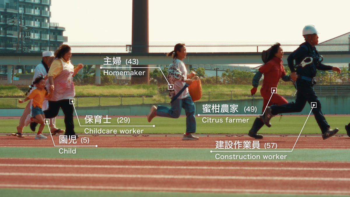 本動画では、あえて“感情に訴えるユーモア表現”を主軸に据え、メイン動画「定時ダッシュのその先へ。」では、冒頭15秒を大型ドローン(DJI INSPIRE 3)で一発撮りを行い、想定外の展開とコミカルな演出によって、従来のイメージとの“ギャップ”を意図的に演出し、視聴者の記憶に強く残る映像体験を創ることに成功した。