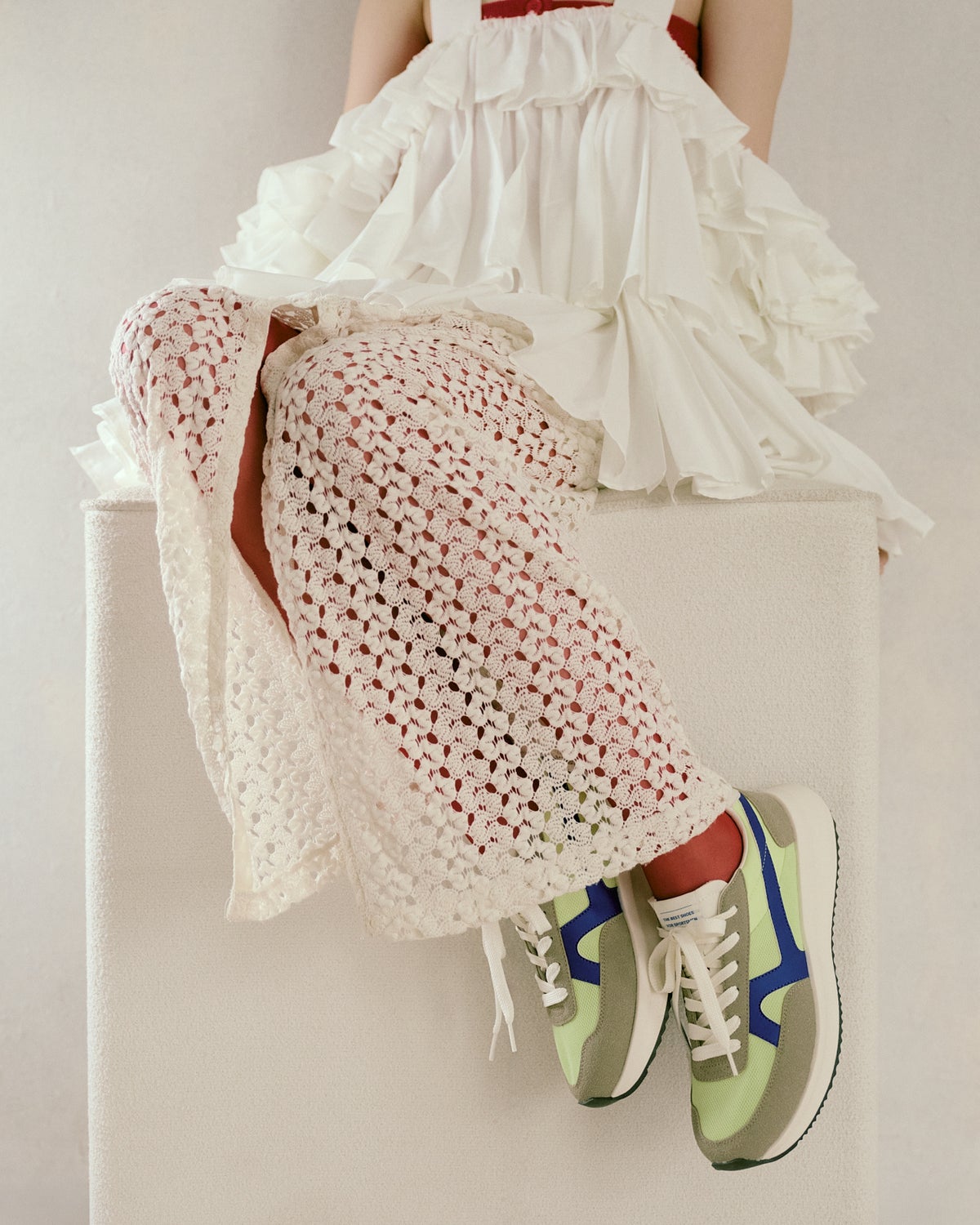 長く学生に親しまれてきたスポーツシューズ「ジャガーシリーズ」をベースにしたランニングタイプです。メッシュと起毛素材を組み合わせたレトロな雰囲気のアッパーに、軽量でクッション性の高い厚めのソールを組み合わせ、今のライフスタイルに合わせてモダナイズしました。新色はスタイリングに取り入れやすい“BLACKMONO”と、人気のポップなカラーコンビにはライムグリーンをベースにブルーのサドルを効かせた“LIME”とが登場。