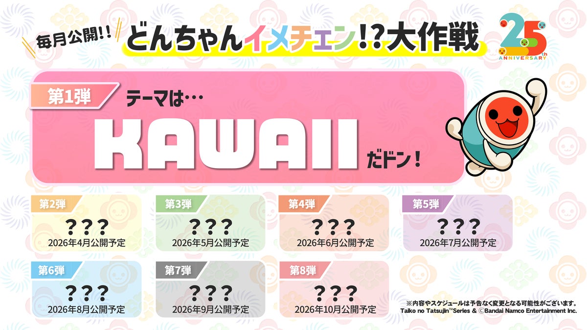 株式会社バンダイナムコエンターテインメントと株式会社バンダイナムコエクスペリエンスは、2026年2月21日に25周年を迎えました「太鼓の達人」につきまして、25周年を記念した各種情報を公開いたしましたのでお知らせいたします。