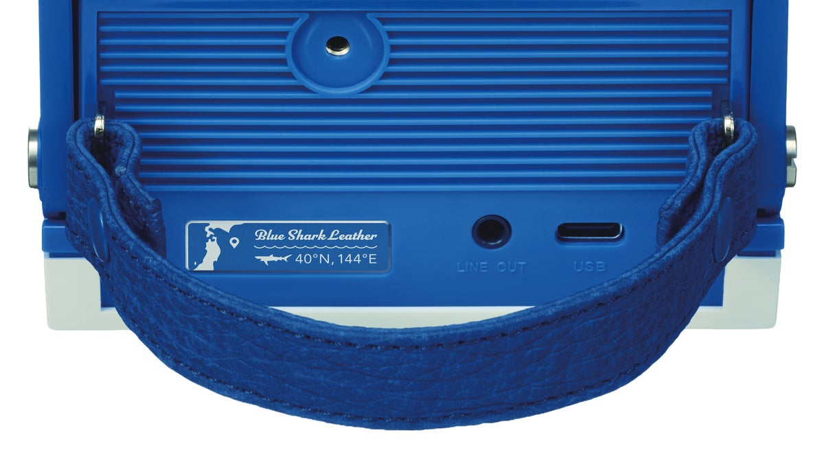 「SHARK BURGER(シャークバーガー)」は、レコードを挟むだけでどこでも気軽にアナログサウンドを楽しめるというユニークなコンセプトで広く世界の人々から愛されているポータブルレコードプレーヤー「SOUND BURGER(サウンドバーガー)」をベースに、気仙沼産サメ革を背面ハンドルに採用。