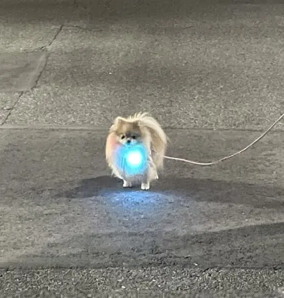 光っているのは夜の散歩用首輪。しかし飼い主さん曰く「夜道の遠目からだと完全に輝く玉」なのだそう。おかげで散歩中すれ違う人に、「光っていたのはポメラニアンだったんだ」とささやかれることも。どうやら散歩中も多くの人から注目を集めているようです。