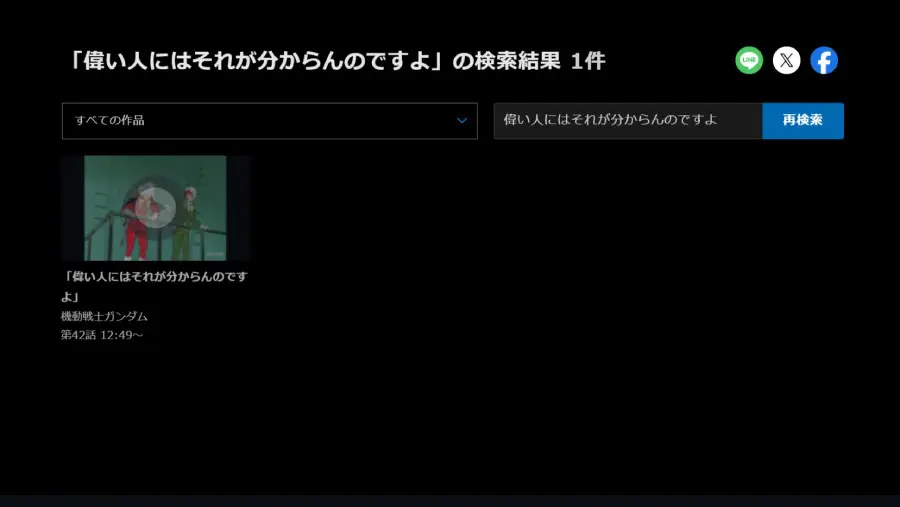 バンダイチャンネルにはセリフ検索機能があるのをご存知でしょうか。①セリフ検索機能
