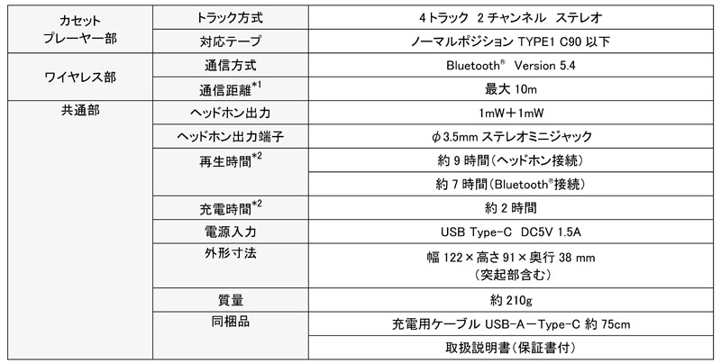 そして、半世紀以上にわたりカセットテープを販売してきたマクセルブランドから登場する本製品は、Bluetooth対応により、従来の有線ヘッドホンだけでなくワイヤレスヘッドホンでも音楽を楽しめる、再生専用の仕様。