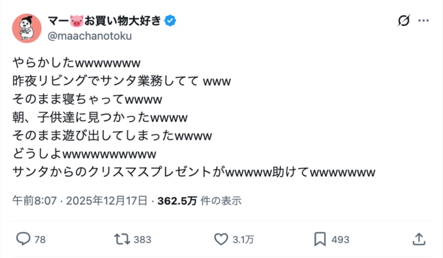 プレゼントをむき出しで放置…「あわてんぼうの親御サンタ」に共感の声