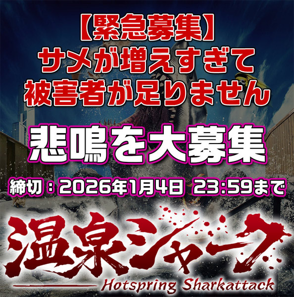 温泉シャーク2、断末魔を緊急公募 「被害者が足りません」