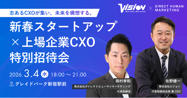 【プレスリリース】株式会社ダイレクトヒューマンマーケティング、東証プライム上場ビジョン社と「新春スタートアップ×上場企業CXO特別招待会」を3月4日に共同開催