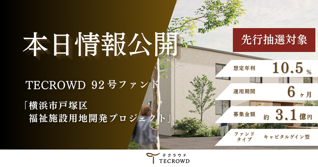 【想定年利10.5%】不動産クラウドファンディング「TECROWD」、国内キャピタルゲイン型ファンド「横浜市戸塚区 福祉施設用地開発プロジェクト」を情報公開