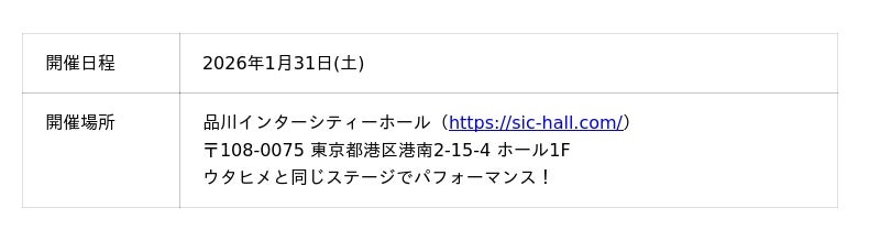 [表4: https://prtimes.jp/data/corp/101562/table/538_4_af72fae4bb52a0b81369be9b3fbf05aa.jpg?v=202509220946 ]『ウタヒメドリーム AUDITION ~未来のウタヒメはあなた~ Powered by ANIMAX』は、ウタヒメドリーム AUDITION 事務局が運営いたします。