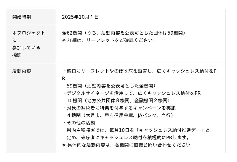 当行は本プロジェクトの事務局として、山梨県民の皆さまがより身近にキャッシュレス納付の便利さを実感できる環境を広げ、山梨県全体を納税の新たなステージへと導くべく、今後も参画機関の皆さまとの連携を一層強化してまいります。