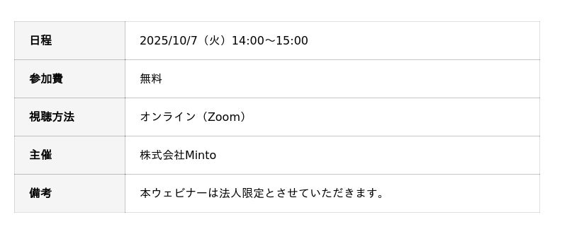 [表: https://prtimes.jp/data/corp/29274/table/262_1_532ba276e2f07bf08d48e93847c6de20.jpg?v=202509250316 ]