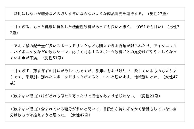 ☆スポーツドリンク・機能性飲料の不満点/飲まない理由(全4,943件)