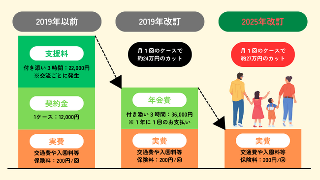 最も費用のかかる『付き添い型』での支援料金の変遷を示した図