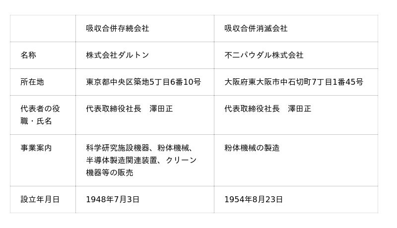 株式会社イトーキ(本社:東京都中央区 代表取締役社長:湊 宏司)のグループ会社である株式会社ダルトン(本社:東京都中央区 代表取締役社長:澤田 正)は、2025年1月に発表した通り、ダルトンの100%子会社である不二パウダル株式会社との合併を本日2025年10月1日付で実行しましたので、お知らせします。