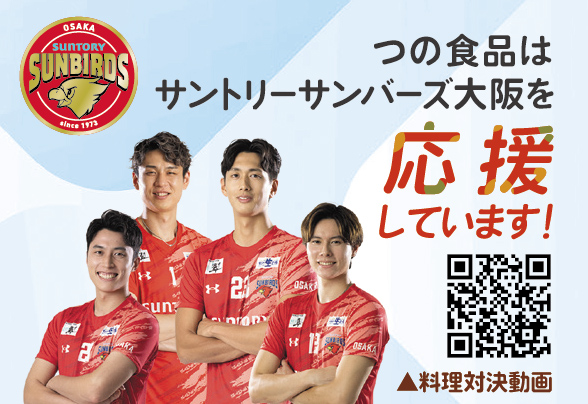 「お米の油は、つの食品。」築野食品工業株式会社は、大同生命SV.LEAGUE MEN所属「サントリーサンバーズ大阪」様と2025-26シーズンにおけるオフィシャルパートナー契約(プラチナパートナー)を締結しております。「大阪から世界へ」、バレーボール世界一のクラブを目指す、大同生命SV.LEAGUE MEN所属サントリーサンバーズ大阪を、引き続き応援してまいります。