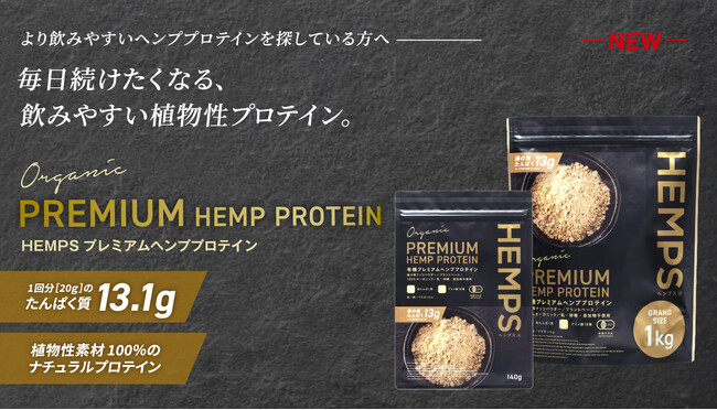 株式会社ヘンプフーズジャパン(本社:栃木県那須塩原市、代表取締役:松丸誠)は新商品 「HEMPS 有機プレミアムヘンププロテイン」 をを2025年10月1日(水)より一般発売いたします。本製品は、従来のヘンププロテインとは異なり、殻を剥いた有機ヘンプシードをメインに使用することで、タンパク質量の増加プラス、なめらかで飲みやすい口あたりとほんのりとした甘みを実現。これまでヘンププロテイン特有の風味が苦手だった方にも続けやすい、ワンランク上のプレミアムプロテインです。