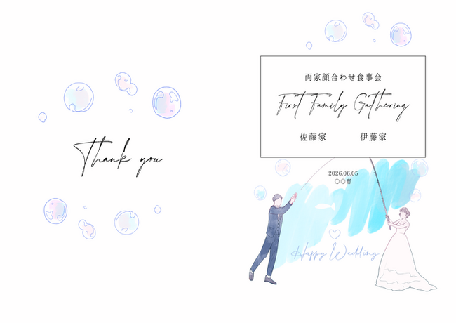 「1122」のバルーンを手に、幸せそうに並ぶおふたりを描いた特別なデザイン。ふたりの新しい門出を祝福し、これからも仲良く、笑顔あふれる毎日が続きますようにという願いを込めて。