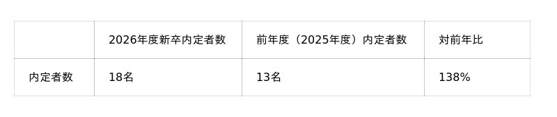 当社の2026年度新卒採用における内定者数は、以下の通りです。