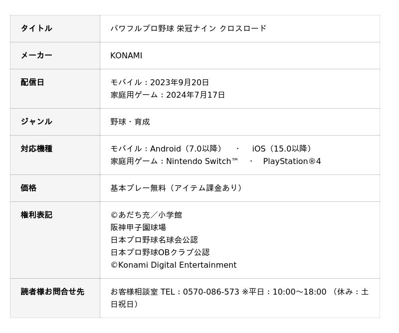 [画像9: https://prcdn.freetls.fastly.net/release_image/50711/1278/50711-1278-e82723ebdf0adbb0ab7a6c8a27797439-1024x1062.png?width=536&quality=85%2C75&format=jpeg&auto=webp&fit=bounds&bg-color=fff ]本作は、家庭用の「パワフルプロ野球」シリーズに搭載されている人気ナンバーワンモード※1「栄冠ナイン」が遊べる基本プレー無料(アイテム課金あり)のゲームアプリです。