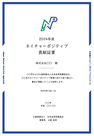 公益財団法人日本自然保護協会(理事長:土屋俊幸、以下NACS-J)は、地域(市町村)全体を見据えたランドスケープアプローチ※1でネイチャーポジティブの実現に取り組んでいる企業の貢献度を評価して「ネイチャーポジティブ貢献証書(以下、貢献証書)」を発行しています。