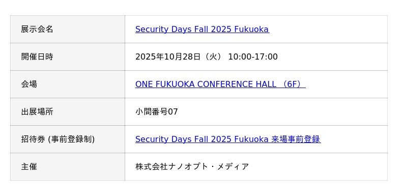 ▶ 「Security Days Fall 2025 Fukuoka」特設サイトはこちら