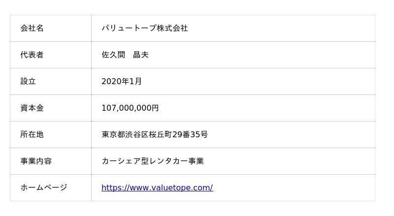 バリュートープ株式会社 オールタイムレンタカー運営事務局
