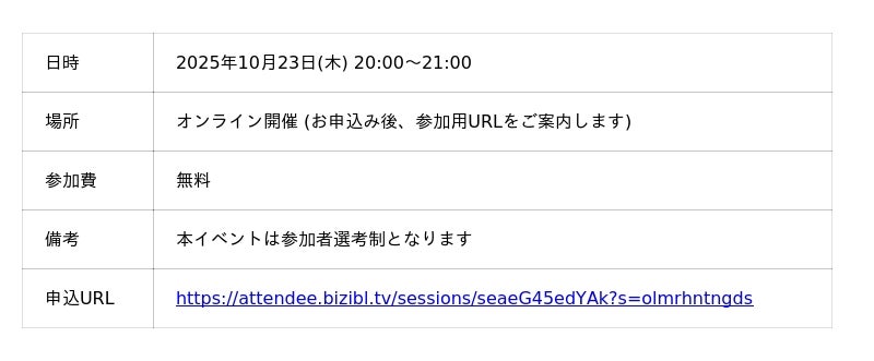 2025年10月23日(木)に無料オンラインセミナーを開催いたします。本イベントでは、Big4でAI・データ部門の立ち上げを経験したプロフェッショナルが登壇し、AI時代に本当に価値を持つスキルセットとキャリア戦略について解説します。
