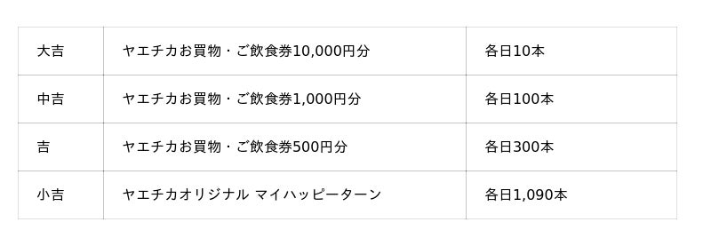 さらに、ヤエチカパーキング駐車券をご提示でプラス1回おみくじが引けます。