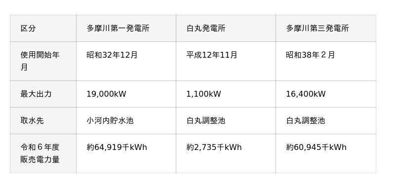 多摩川第一発電所、白丸発電所及び多摩川第三発電所で発電する電気(これに付随する非FIT非化石の環境価値を含む。)