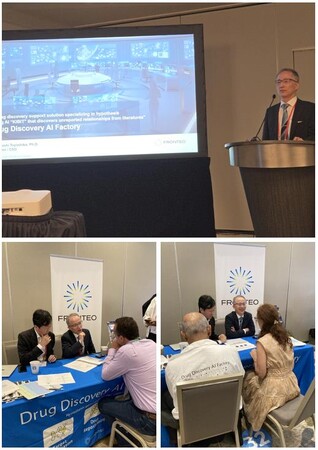 本講演は、聴講した参加者から高い評価と関心を集めました。会場では、海外の大手製薬企業やアカデミアの研究者をはじめとする多くの参加者がFRONTEOのブースを訪問し、DDAIFが創薬における新たなブレークスルーをもたらす可能性について活発な意見交換が行われました。
