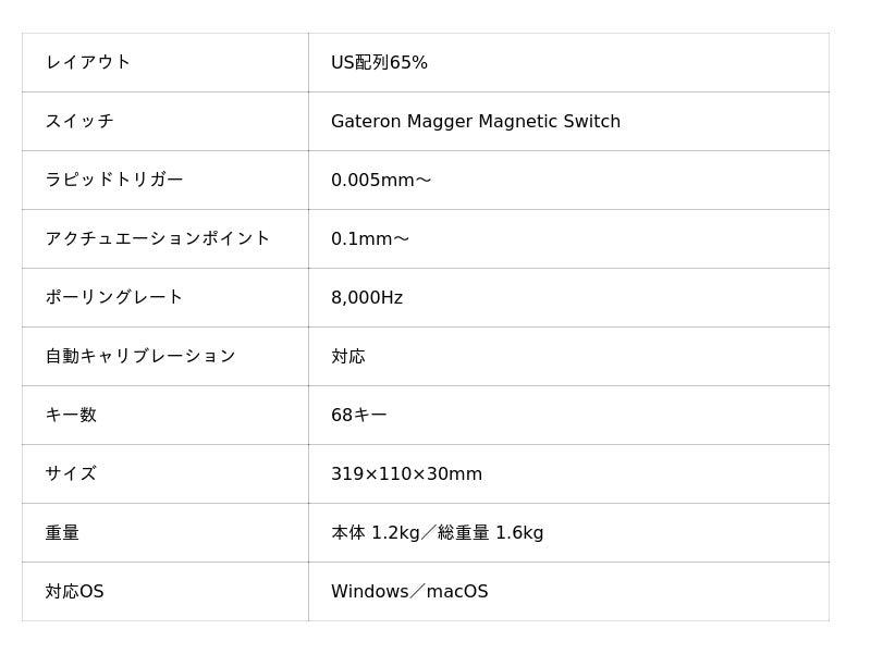 LUMINKEYとGateronが共同開発した「Gateron Magger Magnetic Switch」を搭載しています。