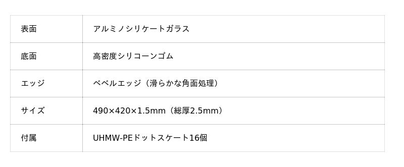 底面の高密度シリコーンゴムと付属のUHMW-PEドットスケートがパッドのズレを防止し、快適なマウス操作をサポートします。1.5mmの強化ガラスが、美麗なイラストを鮮やかに映し出し、デスクを彩るアートとしてもお楽しみいただけます。