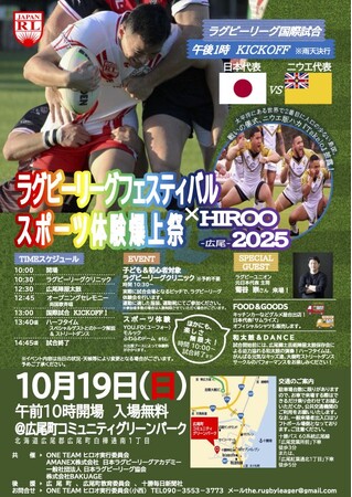 会場では、13人制ラグビーリーグ国際試合「日本代表 vs ニウエ代表」の開催に合わせて、多彩なスポーツ体験やグルメ屋台が楽しめる1日となります。