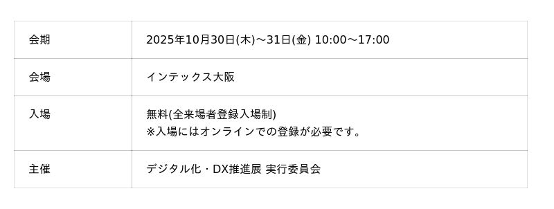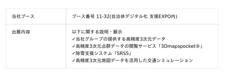 ダイナミックマッププラットフォーム株式会社(本社:東京都渋谷区、代表取締役社長CEO: 吉村 修一、以下「当社」)は、2025年10月30日(木)~31日(金)にインテックス大阪で開催される「第5回 デジタル化・DX推進展(ODEX)」内の「自治体デジタル化 支援EXPO」にブース出展します。なお、ODEXへの出展は当社として初の取り組みです。