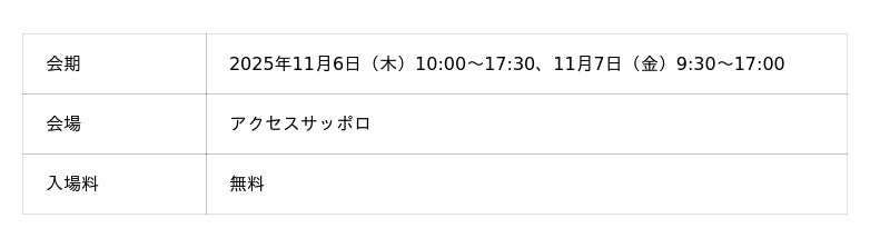 北海道の産業発展に貢献する省エネ技術の可能性を、ぜひ会場で直接ご体験ください。皆さまのご来場を心よりお待ちしております。