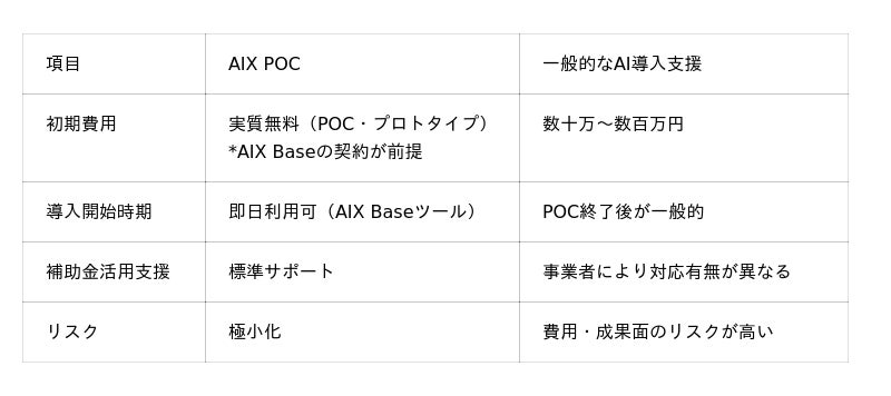 『AIX POC』は、こうした課題に直面する中小企業に対し、以下の特長を備えた新しい導入モデルを提供します。