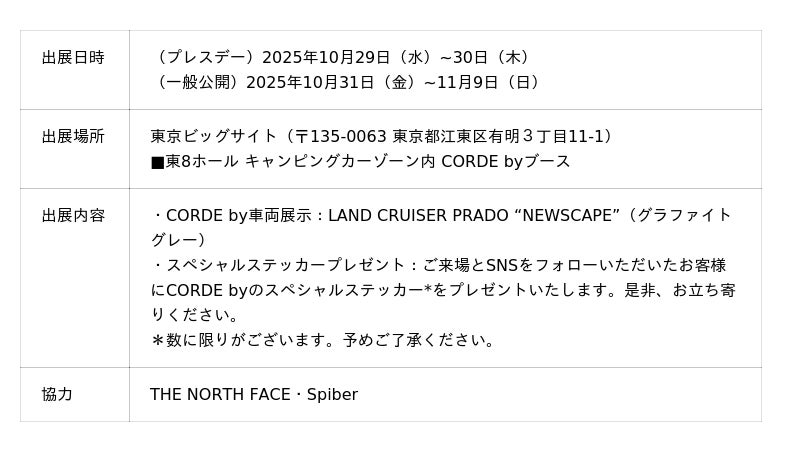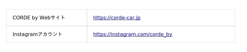 車両詳細や今後のイベント出展については、下記公式サイトおよびCORDE by公式SNSにて順次公開いたします。