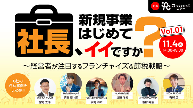 株式会社LEAGUEは、日本FCファンド企画で6社共催オンラインFCファンドツアー『1000万円以下で節税に活用できる投資型FC事業』を2025年11月4日(火)14時から開催いたします。