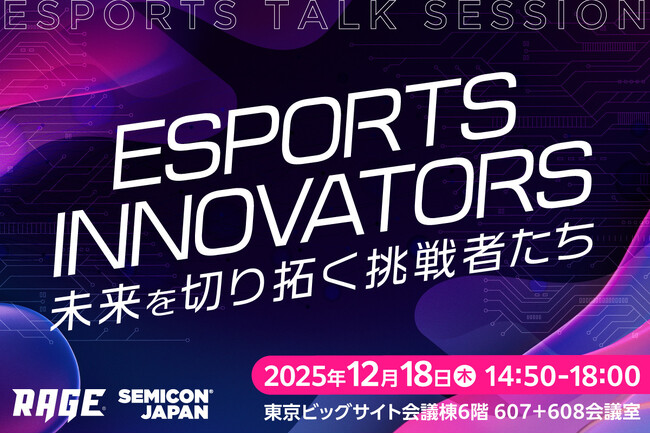 国内最大級のeスポーツイベント「RAGE(レイジ)」は、2025年12月18日(木)に東京ビッグサイトで開催される「SEMICON Japan 2025」特別企画「ESPORTS INNOVATORS ~未来を切り拓く挑戦者たち~」(主催:SEMI)において、イベント運営協力として参画することをお知らせいたします。